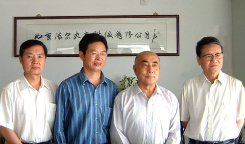 全國高科技健康產業工作委員會孟昭銳主任、劉存祥秘書長、全國衛生產業企業管理協會抗菌產業分會秘書長楊尊潤到北京潔爾爽公司考察工作。(2008)