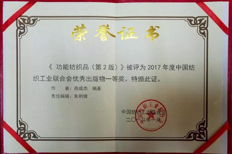 《功能紡織品(第2版)》被評為2017年度中國紡織工業聯合會優秀出版物一等獎!