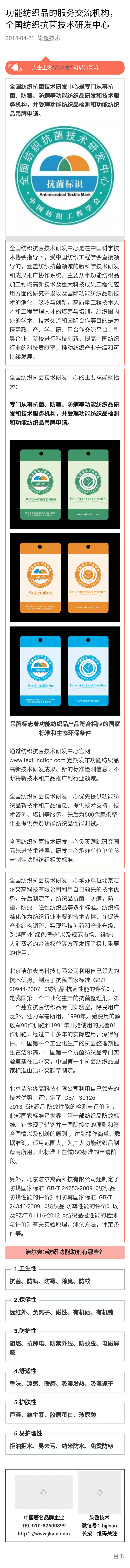 功能紡織品的服務交流機構 全國紡織抗菌技術研發中心