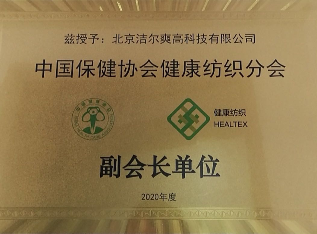 北京潔爾爽黑科技有限公司被授予中國保健協(xié)會健康紡織分會副會長單位